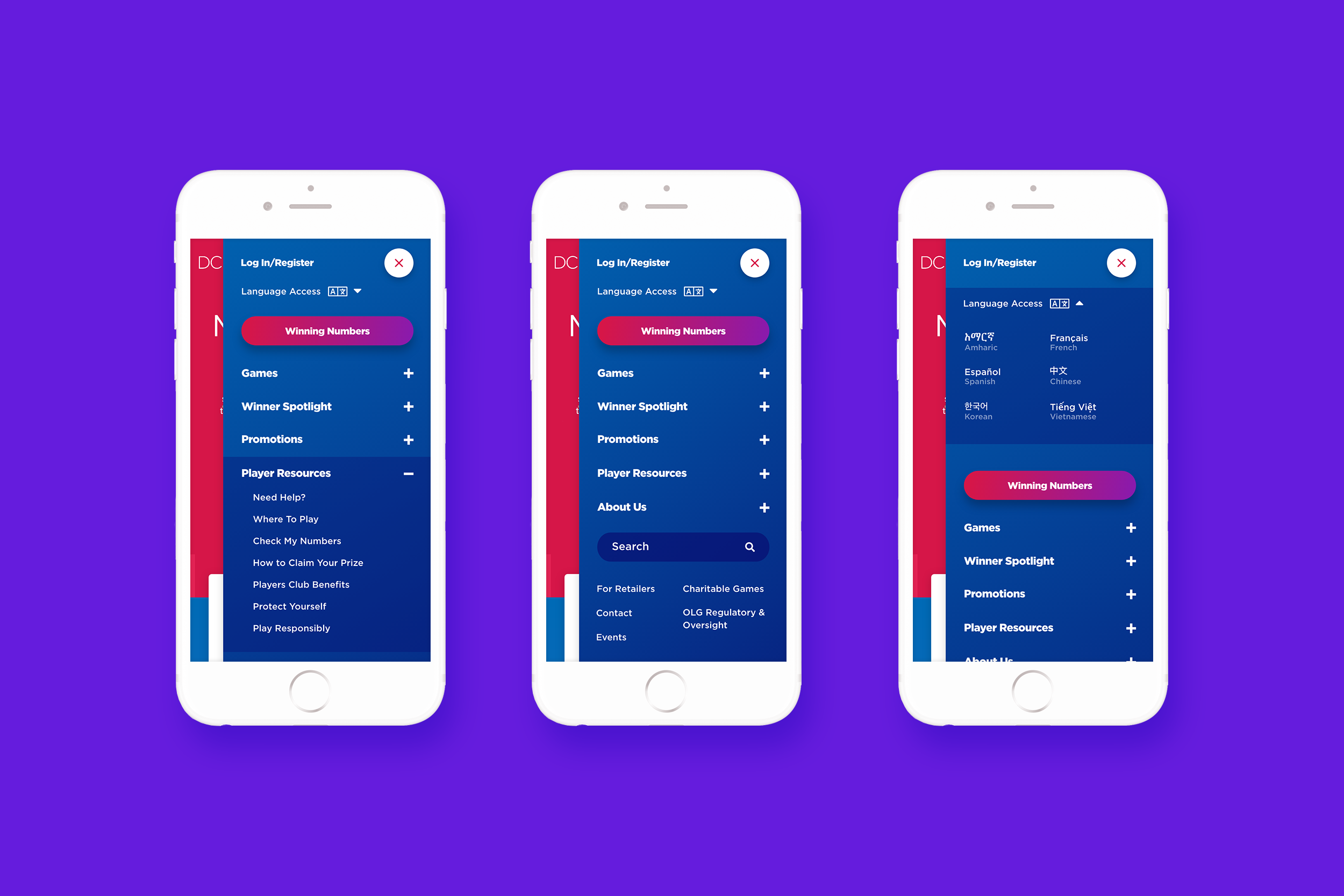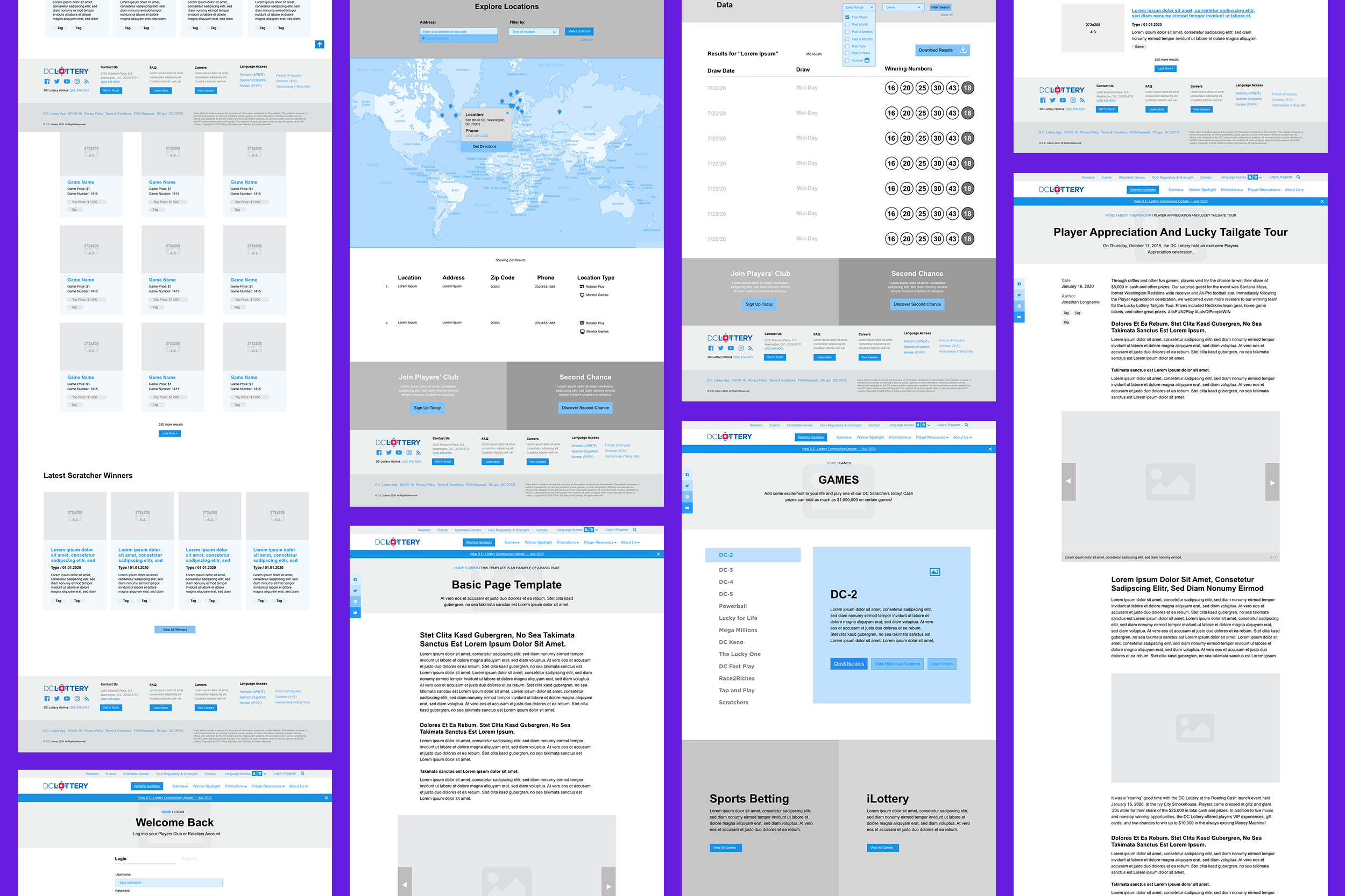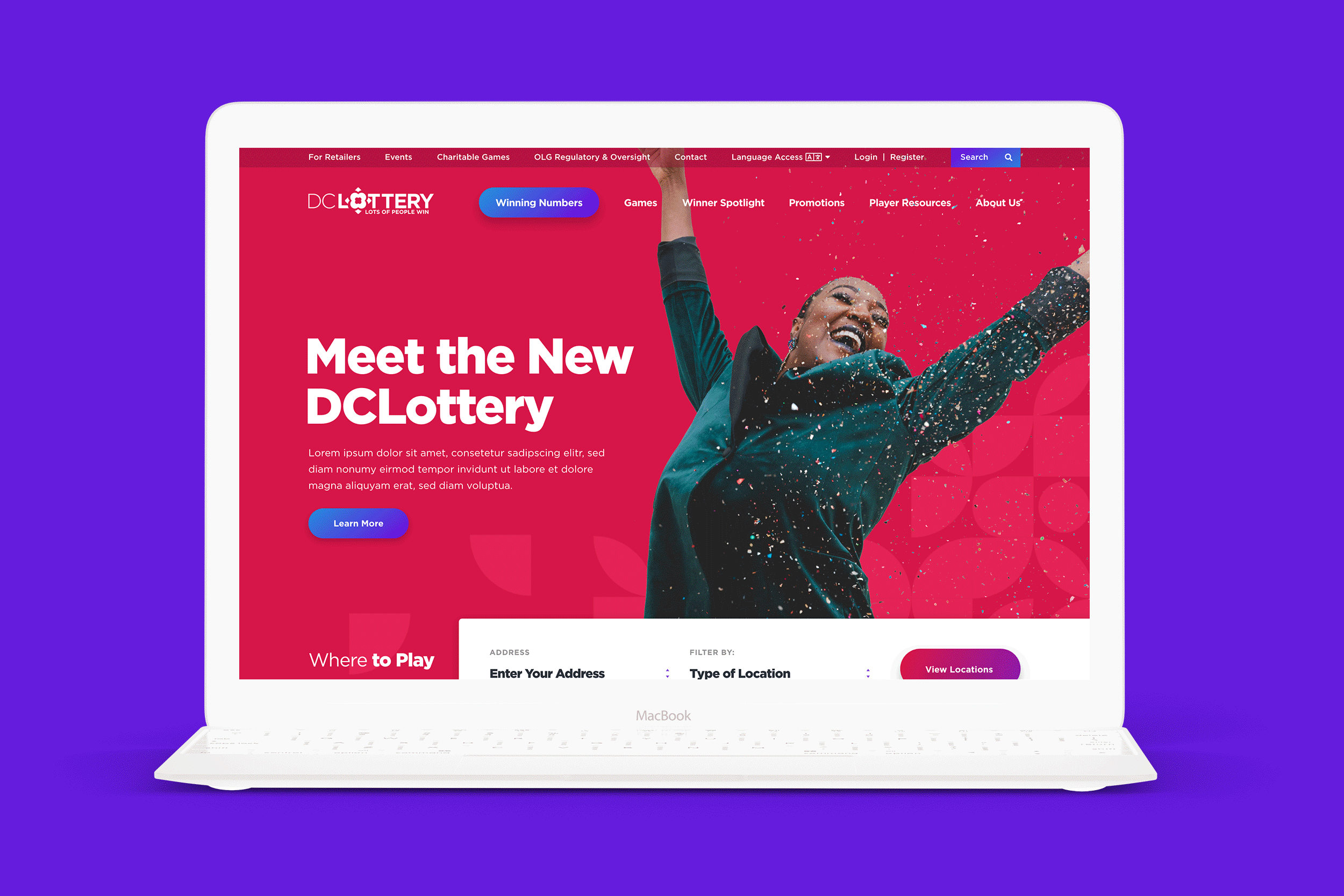 Most other state lotteries let inconsistent, uninspired product art drive their site aesthetic. We chose to subvert this pattern by focusing on people and abstract patterns inspired by their brand identity.